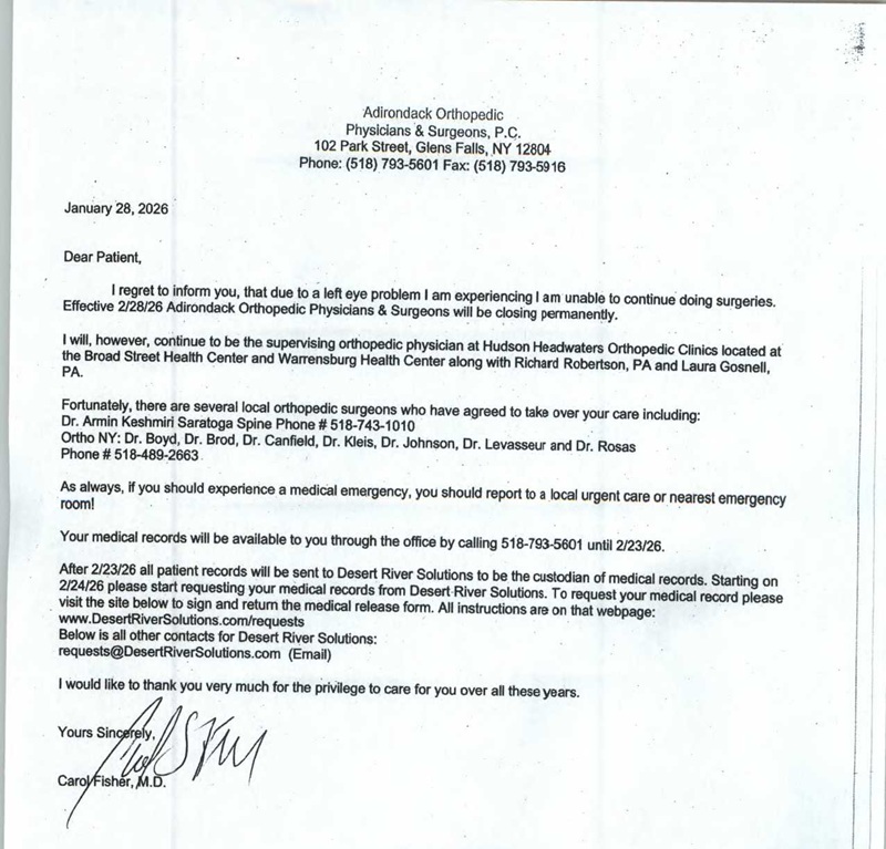 Adirondack Orthopedic Physicians and Surgeons provides community care for problems of the musculoskeletal system, including bones, joints, muscles, ligaments, tendons, and nerves.